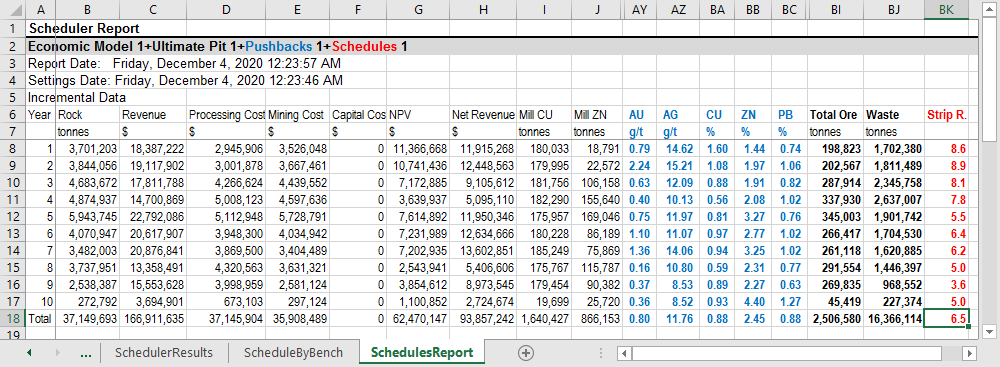 Veinless Block Model in NPV Scheduler to a Set of 20x20x10m